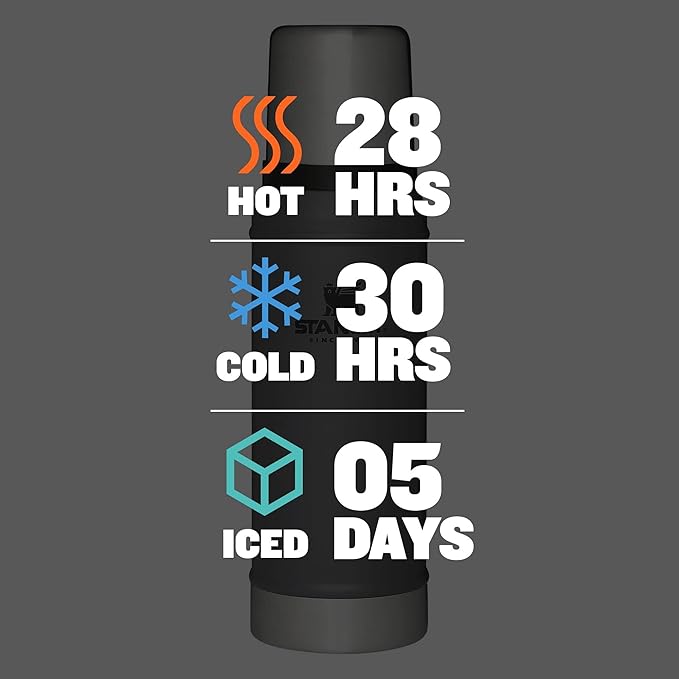 - KEEP IT HOT OR COLD: Our Stanley Classic Vacuum Bottle is made with superior insulation that keeps liquids (soup, coffee, tea) hot or cold drinks cool for up to 24 hours. It’s also made with BPA-free materials, keeping its contents safe to consume.
