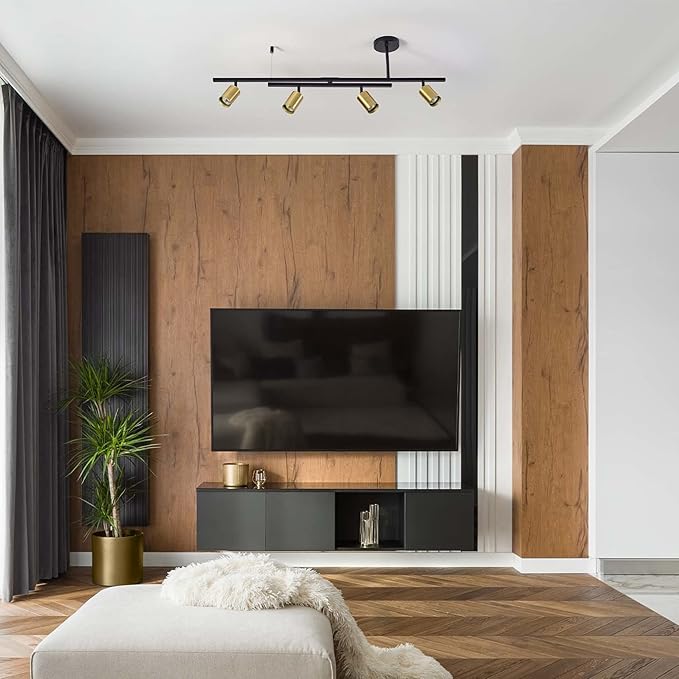 Globe Electric 57501 4-Light Track Lighting, Matte Black, Matte Brass Track Heads, Center Swivel Bar, 4 Bulb Kitchen Light, Ceiling Light Fixture, Track Lighting, Swivel, Bulb Not Included