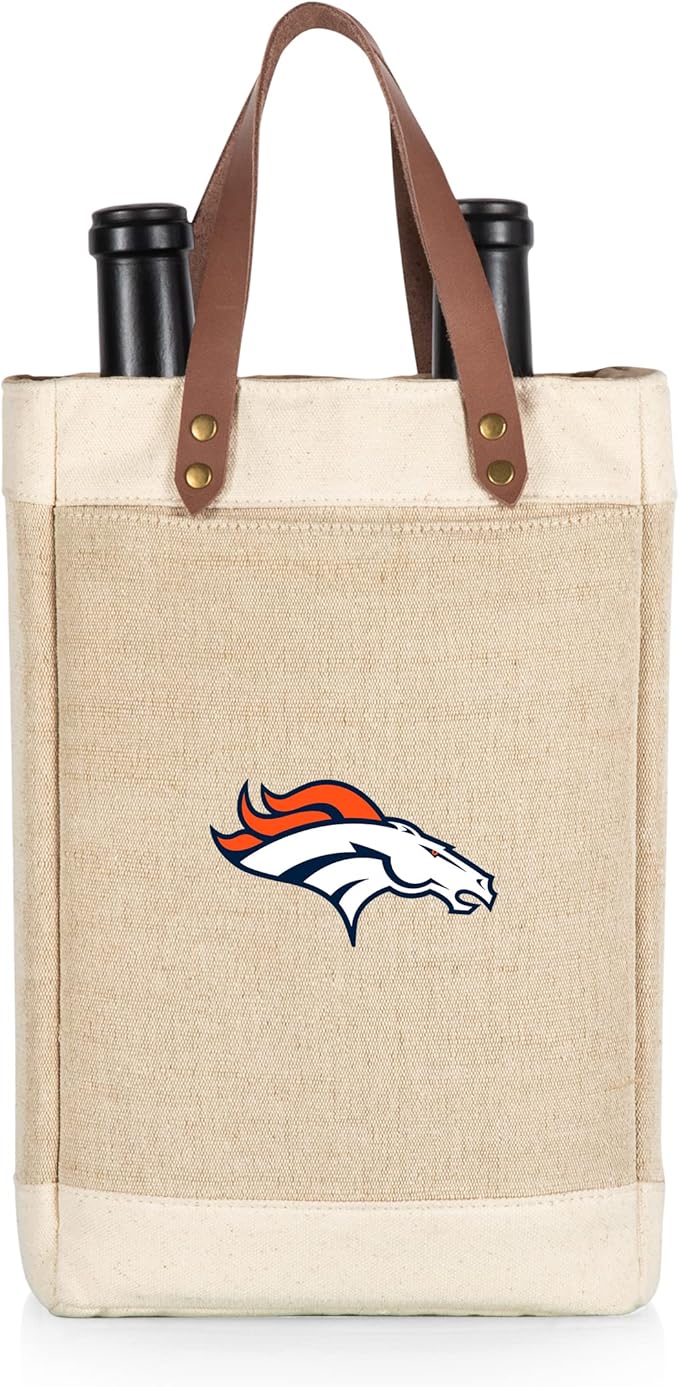 PICNIC TIME NFL Pinot - Jute 2 Bottle Insulated Wine Bag - Wine Tote Bag - Wine Gift Bag, (Beige)