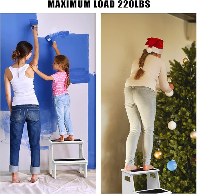 - Large Maximum Weight: The improved stepping stool has structure design with reinforcing beams, would enhance the stability and load-bearing capacity of toddler step stool, so it can be used for adults up to 220 lbs