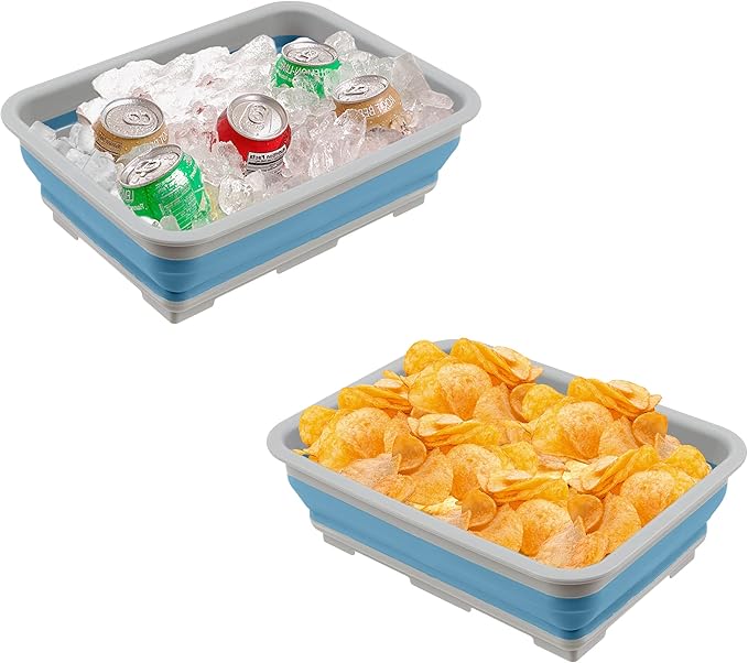 - WASH BASIN SET OF TWO – These versatile bins can be used for a variety of tasks at home and on the go. Each collapsible dish tub can be used as an ice bucket, camping sink, for gathering and rinsing fresh produce, as a cleaning caddy, car wash bucket and more.