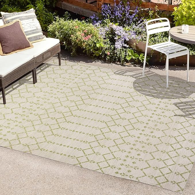 JONATHAN Y SMB108M-8 Ourika Moroccan Geometric Textured Weave Indoor Outdoor Area-Rug, Bohemian Coastal Traditional Easy-Cleaning,Bedroom,Kitchen,Backyard,Patio,Non Shedding, 8 X 10, Cream/Green