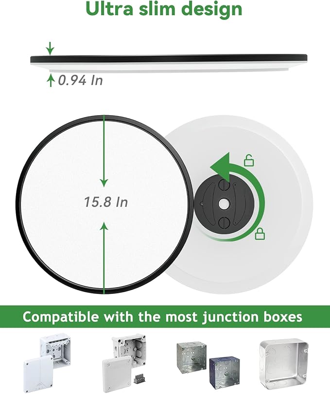 2PACK Flush Mount LED Ceiling Light Fixture Black, 15.8Inch 36Watt, Dimmable & 3000K-4500K-6000K 3 Color Selectable Ceiling Lamp 4000LM Low Profile Ceiling Light for Kitchen Bedroom Hallway Porch