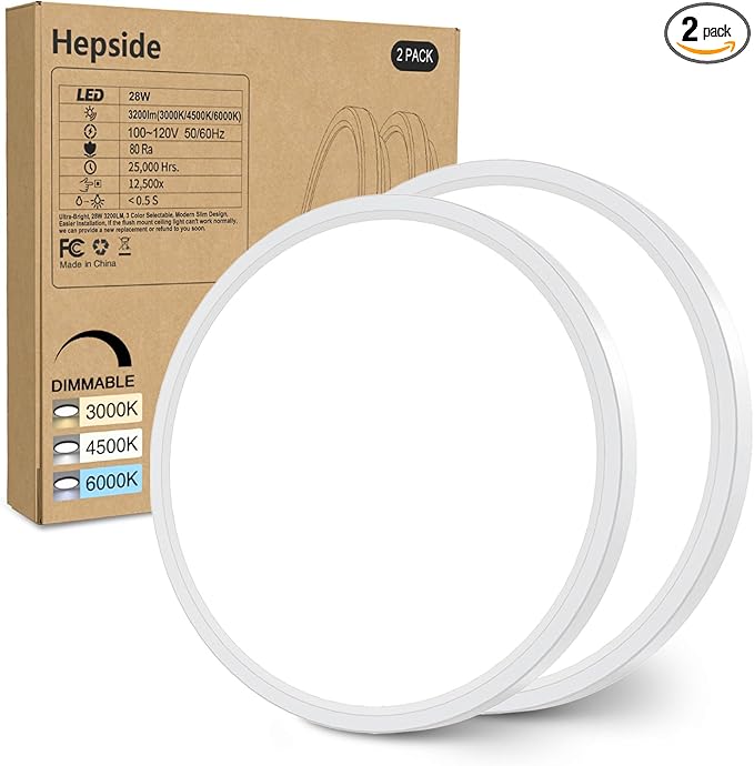 - 【Brightness Dimmable and 3 Color Modes】-Hepside led ceiling light flush mount has 3 kinds of color temperature (Warm white 3000K, Natural white 4500K, Daylight white 6000K), the brightness range can also be adjusted between 10%-100%.Also available as a night light, this ceiling light fixture has a minimum dimming brightness of 10% at 3000K warm white. Children or the elderly will feel safer at night due to the quiet and comfortable light source.