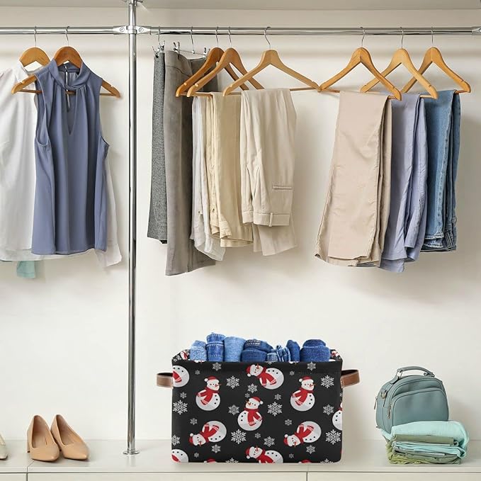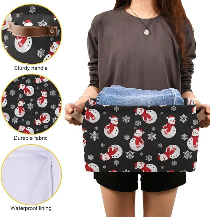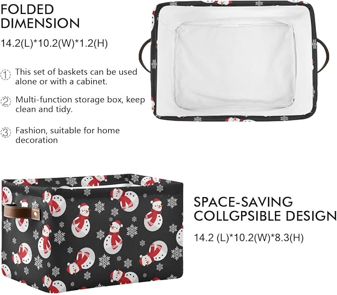 Winter Snowman Snowflake Storage Basket Fabric Laundry Baskets Christmas Holiday Xmas Decorations Storage Boxes Organizer Bag for Baby Cloth Dog Toy Book Storage Cubes Shelf Closet Bins 16×12×8