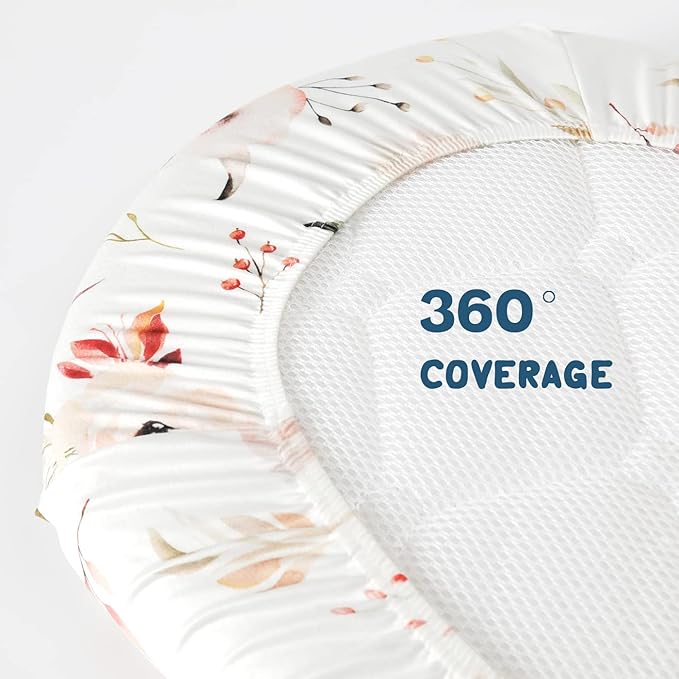 - Universal Fit – Measuring 32" x 16" x 5". Our bassinet sheets fit almost all standard oval, round, rectangle, hourglass shaped bassinet mattress. Each bassinet mattress pad cover comes with an elastic band encased at the bottom for safety.