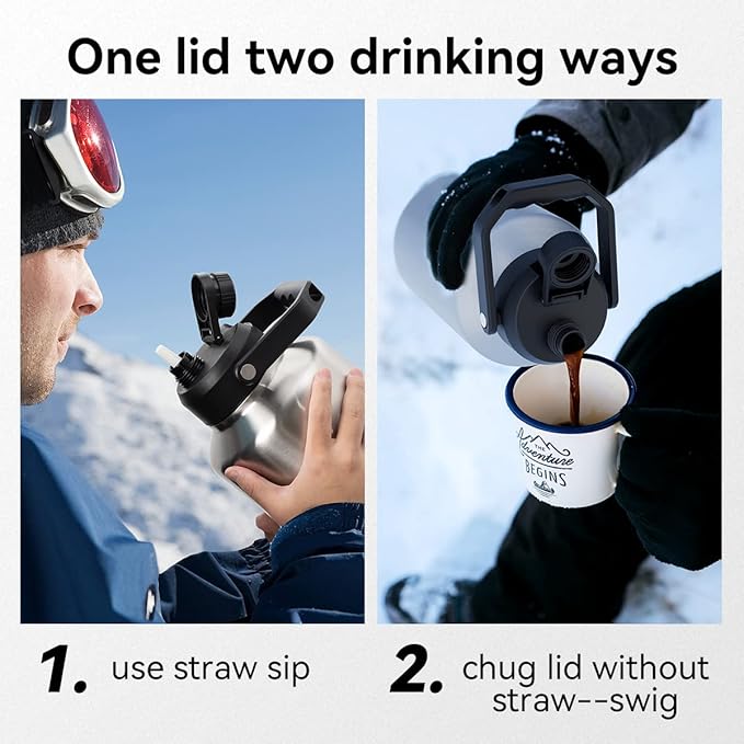 - DOUBLE WALL INSULATION: ZUWOZU half gallon water bottle features double-walled vacuum insulation technology to keep drinks cold for up to 48 hours or hot for up to 24 hours,ensuring that your favorite beverages are at the perfect temperature all day long.