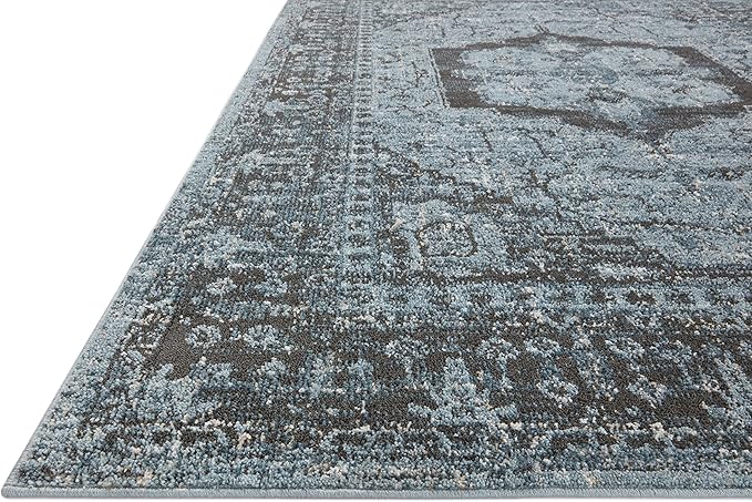 Loloi II Odette Collection ODT-08 Sky/Charcoal 9'-2" x 9'-2" Round Area Rug