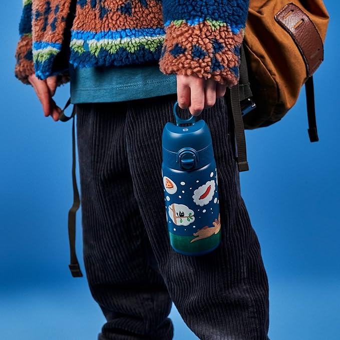 Ion8 Kids Water Bottle, Steel 400 ml/13 oz, Leak Proof, Easy to Open, Secure Lock, Dishwasher Safe, Flip Cover, Carry Handle, Easy Clean, Durable, Scratch Resistant, Raised Print, Dog Dreaming Design