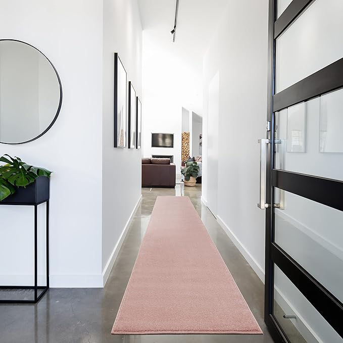 Nourison Essentials Solid Indoor/Outdoor Pink 2'2" x 20 Area Rug, Easy Cleaning, Non Shedding, Bed Room, Living Room, Dining Room, Deck, Patio, Backyard (2x20)