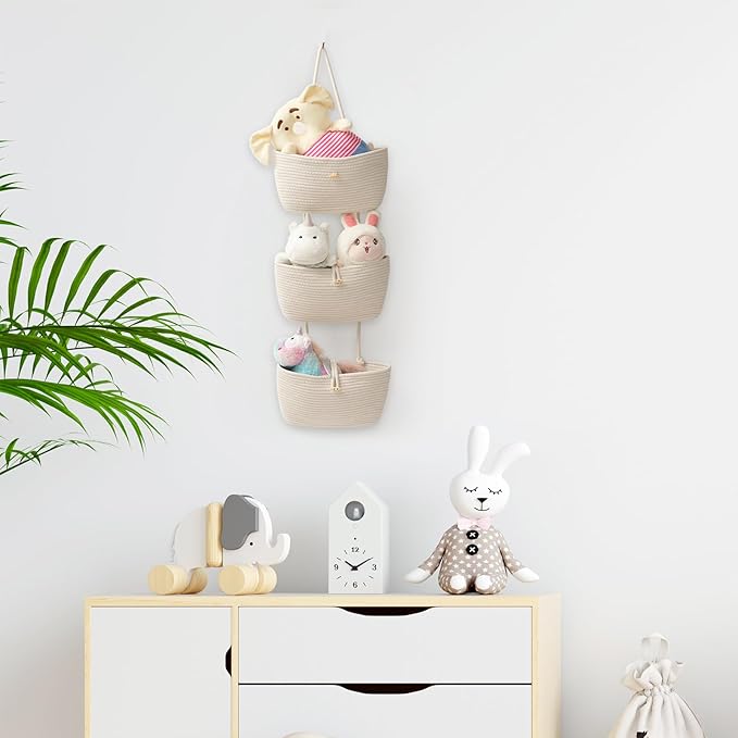 - Premium Material: These nursery hanging baskets are made of 100% natural cotton, skin-friendly. Strictly selected cotton thread, solid and durable, add bricks and tiles to your quality life. Time flies, and these hanging baskets are still perfect as new