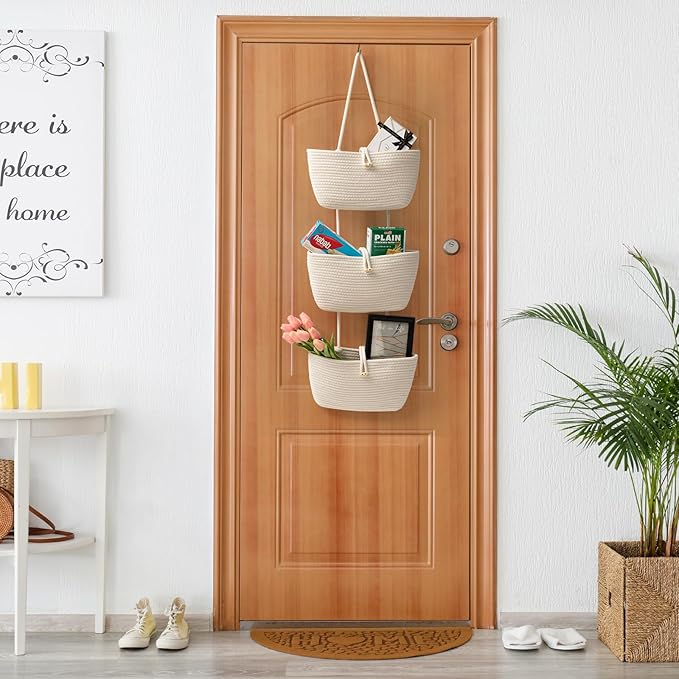 - Widely Usage: These over-the-door hanging baskets will work well with any home decor. Decorative scratch-free hanging baskets can be used to over-the-door place cosmetics, dried flowers, hair tools, debris, toys diapers etc