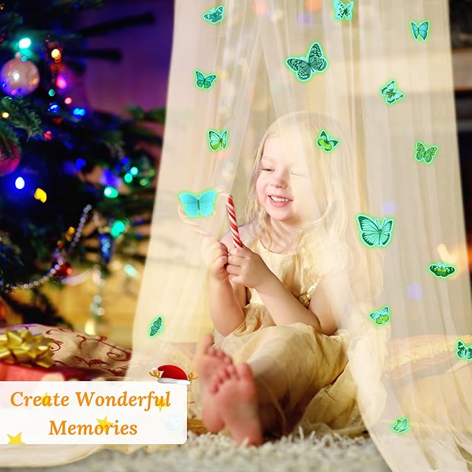 - SLEEP WITH GLOWING BUTTERFLIES: Evenly distributed fluorescent butterflies on the bed canopy will twinkle at the night and make your kids feel like sleeping with snow and dream a wonderful dream. Made of environmentally friendly material and high-temperature treatment, the butterflies stick to the bed canopy firmly and will not fall.