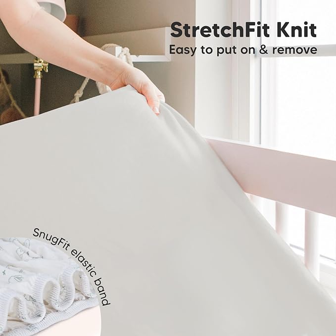 - SnugFit Fabric - Featuring SnugFit fabric technology, the Isla Mini Baby Crib Sheet stretches well for ease of fitting and removal of the mini crib playard sheets from pack n play mattress pads. No more struggling with rigid baby sheets.