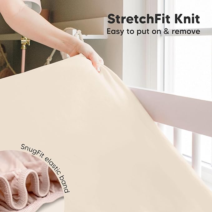 - SnugFit Fabric - Featuring SnugFit fabric technology, the Isla Mini Baby Crib Sheet stretches well for ease of fitting and removal of the mini crib playard sheets from pack n play mattress pads. No more struggling with rigid baby sheets.