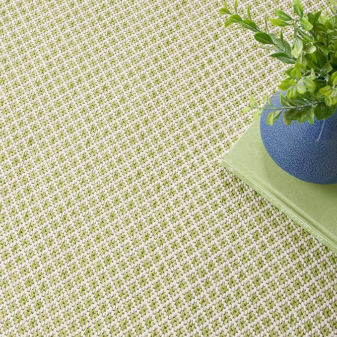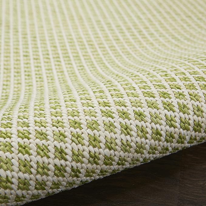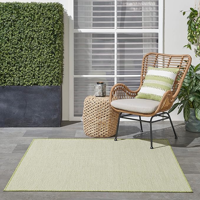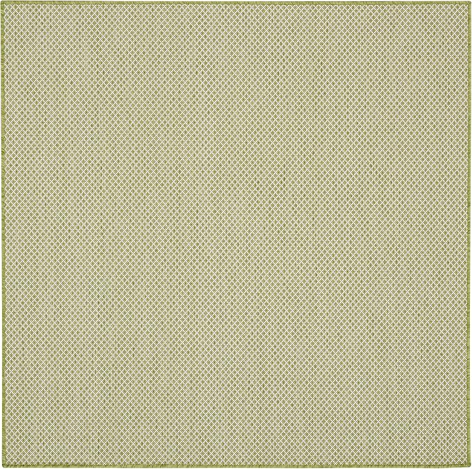 Nourison Courtyard Indoor/Outdoor Ivory Green 5' x Square Area Rug, Easy Cleaning, Non Shedding, Bed Room, Living Room, Dining Room, Backyard, Deck, Patio (5 Square)