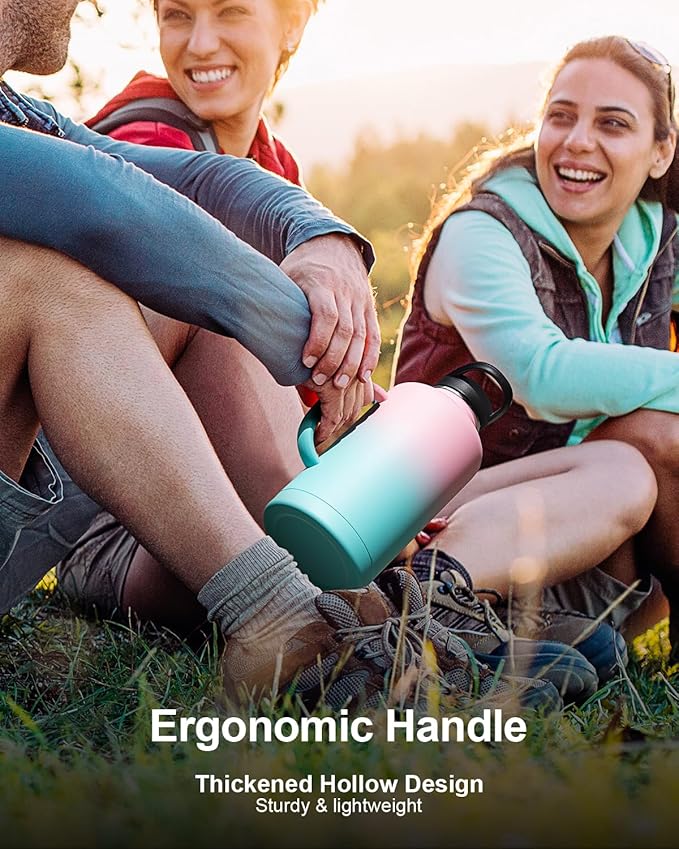 - 48 Hrs Cold & 24 Hrs Hot: Trebo insulated water bottle with handle features double-walled vacuum insulation with a copper lining, keeping beverages cold for 48 hours and hot for 24 hours. Say goodbye to lukewarm drinks and hello to refreshing sips, even in the hottest summer.