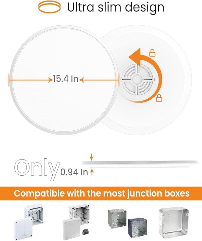 - 【Simple Install】 Less than 1 inch super slim design, stylish and retain more space. Universal base design make light fixture is compatible with most Junction Boxes. Please view the installation video or see the installation instructions, just need spare a few minutes to install of three easy steps.