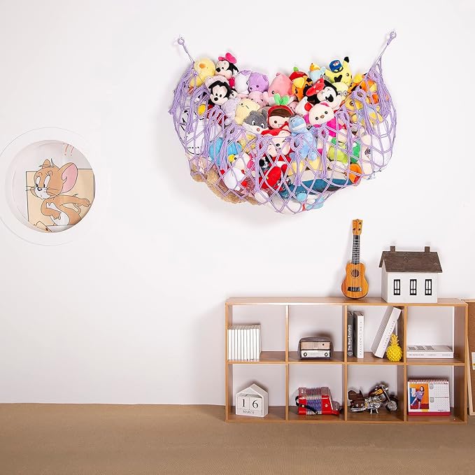 - 【Wall Mounted, Suit for More Spaces】The stuffed animal net or hammockis best stuffed animal storage ideas,ordinary corner plush toy hammock only suit for corner,If you only have a wall space, try this style plush toy storage organizer. Compared with others corner hanging net for stuffed animal ,the stuffed animal hammock for wall suit for flat wall, Bed side, end of Bed.Perfect toy hammock for stuffed animal storage.