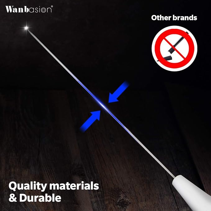 - Excellent Sharp & Long Edge Retention - Wanbasion kitchen knife set with blue knife set block is so thin that the kitchen knife set is sharp enough to cut hard food easily. The new precision edge technology enhances the kitchen knife set with knife set block sharpness and long sharp edge retention.