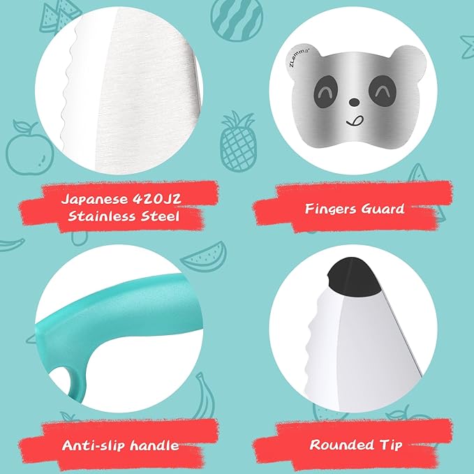 - 【Emphasis on Safety】 Safety is of utmost importance, and the ZLemma Kids Knife excels in providing a secure cutting experience. The finger guard attachment ensures that children's fingers are shielded from any potential cuts while they practice their knife skills. Furthermore, the knife's blade is designed with a safe serrated edge, specifically crafted to cut through food without posing a risk to anything else.