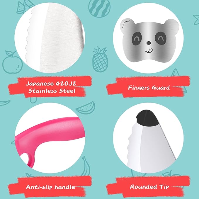 - 【Emphasis on Safety】 Safety is of utmost importance, and the ZLemma Kids Knife excels in providing a secure cutting experience. The finger guard attachment ensures that children's fingers are shielded from any potential cuts while they practice their knife skills. Furthermore, the knife's blade is designed with a safe serrated edge, specifically crafted to cut through food without posing a risk to anything else.