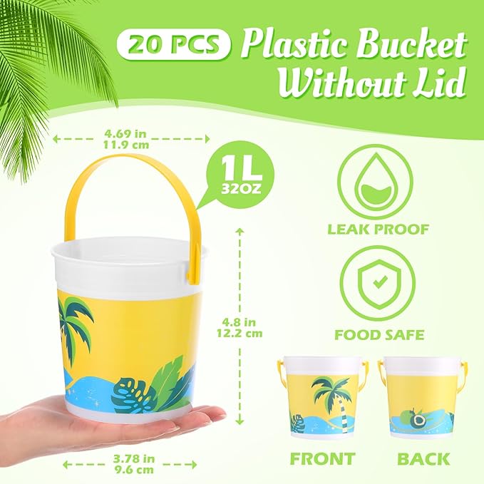 - Large Capacity: each plastic bucket is about 4.69 Inches/ 11.9 cm in mouth diameter, around 3.78 inches/ 9.6 cm in bottom diameter, about 4.8 inches/ 12.2 cm high, has a large capacity of about 32 oz to hold enough ice cubes and beverages