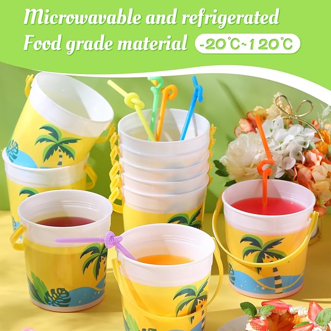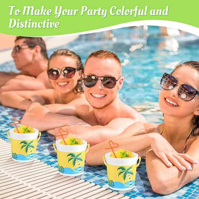 - Practical and Thoughtful Set: there are 20 drink buckets for parties and 100 colorful straws for easy use; The thoughtful and practical set is ideal for various parties, like birthday, wedding, anniversary, summer parties