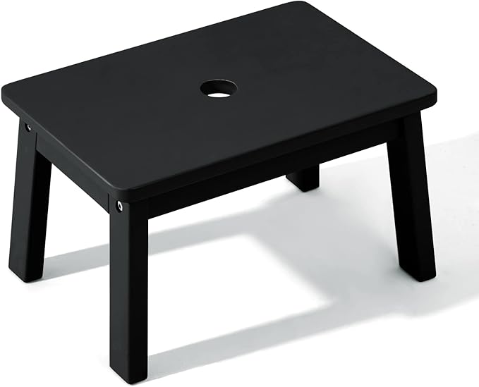 HOUCHICS Black Wooden Step Stool for Kids,Wood Stool for Kitchen Bedroom Living Room Bathroom Toilet Nursery Toddlers Potty Training Stool with Non-Slip Pads and 220lb Load Capacity (White