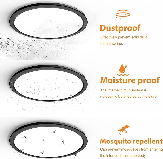 - 【Ultra Thin & Dust-proof】 The led ceiling light is only 0.94 inches thin, which is perfect for low ceiling. The ceiling lamp adopts an integrated design, even if used for a long time, there will be no shadows or black spots inside the lamp, thus maintaining a fresh appearance for many years without cleaning.