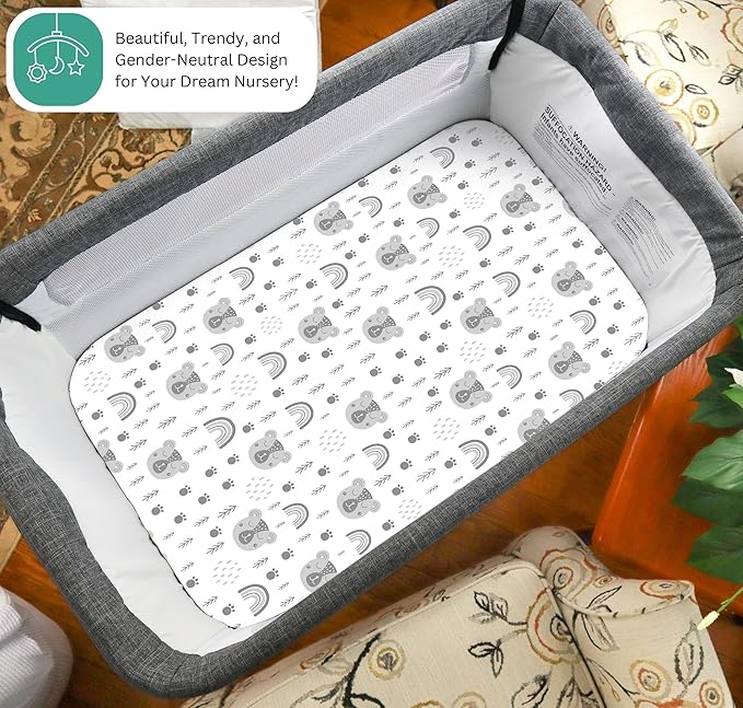 TansyPanda Bassinet Sheets for Cloud Baby, Yacul, Dream On Me Traveler, Skylar, BabyBond, Simmons, 3 Pack, 33x20 in, Ultra Soft, Breathable Snug Fit, Unisex Boys Girls, Gray White (Woodland Rainbow)