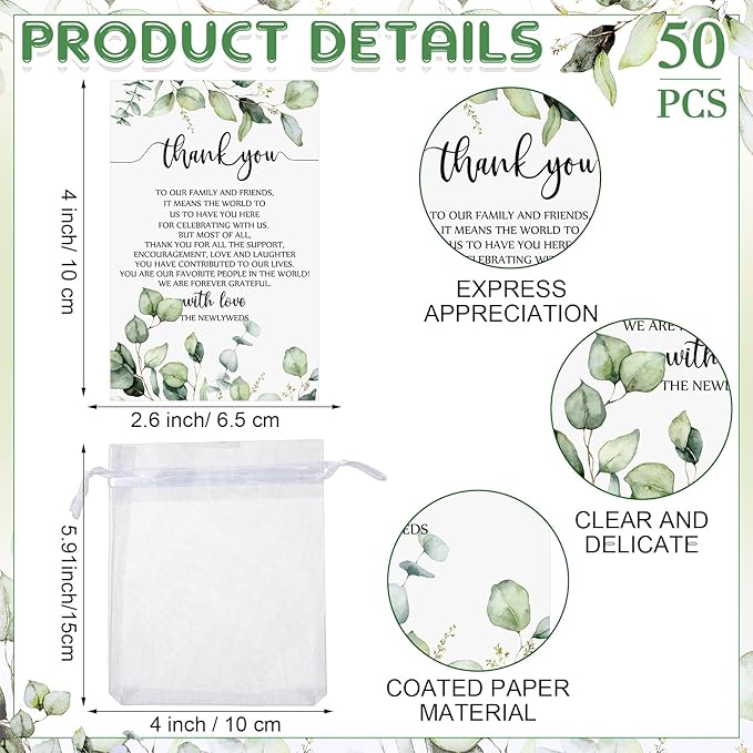 - Widely Application: the thank you place setting wedding greenery cards are ideal for weddings and bridal showers as appreciation gifts for your friends, family, bridesmaids, groomsmen and wedding guests, proper to match with other party decoration supplies