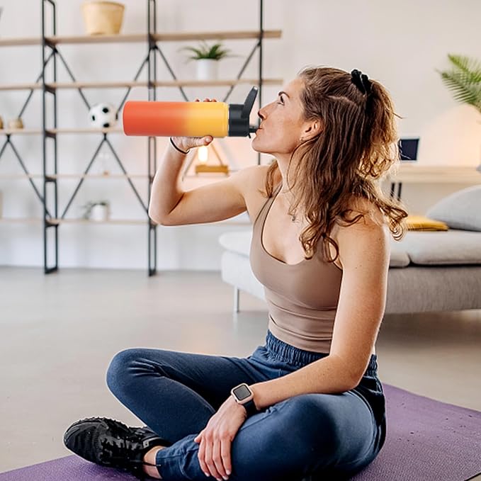 Stainless Steel Water bottle with Straw & Wide Mouth Lid, Wide Rotating Handle, 40oz Double Wall Vacuum Insulated Water Bottle Leak Proof, BPA Free, Keep Cold and Hot, 40oz, Yellow Gradient