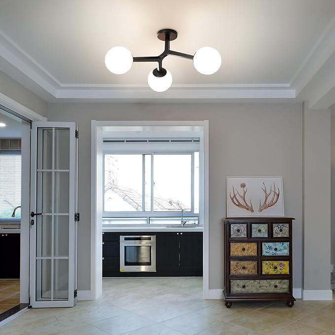 - Easy to install:mnikopE close-to-ceiling light fixture is perfect for low or mid-height ceilings. The globe chandelier includes the necessary mounting hardware components and a detailed installation guide for quick and easy installation.