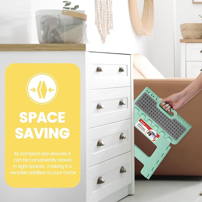 - Versatile Use: The kids step stool are ideal for kitchens, bedrooms, bathrooms, and more. Use step stools for reaching high shelves, organizing wardrobes, or stepping safely in the bathroom. With endless possibilities, this folding step stool is a must-have tool for every corner of your home.