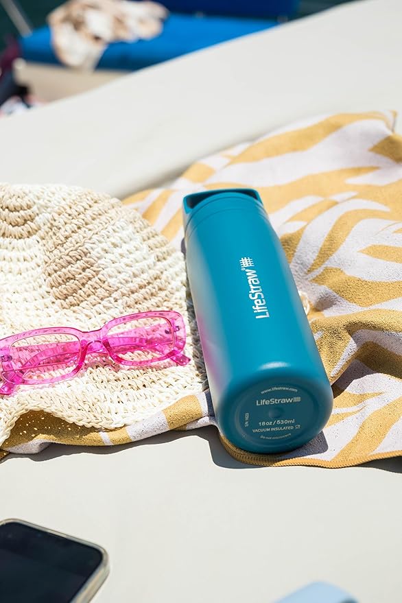LifeStraw Go Series – Double Wall BPA-Free Vacuum Insulated 18 oz Stainless Steel Water Filter Bottle for travel and everyday use; Laguna Teal