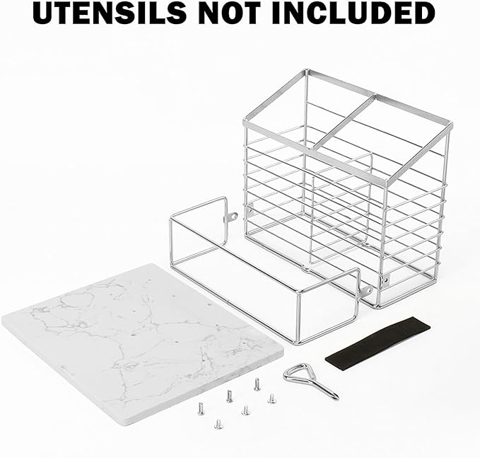 - Large Utensil Organizer, Metal Utensil Holder Rack with Salt and Pepper Shakers, Breathable and Easy to Dry, and Drainage Hole