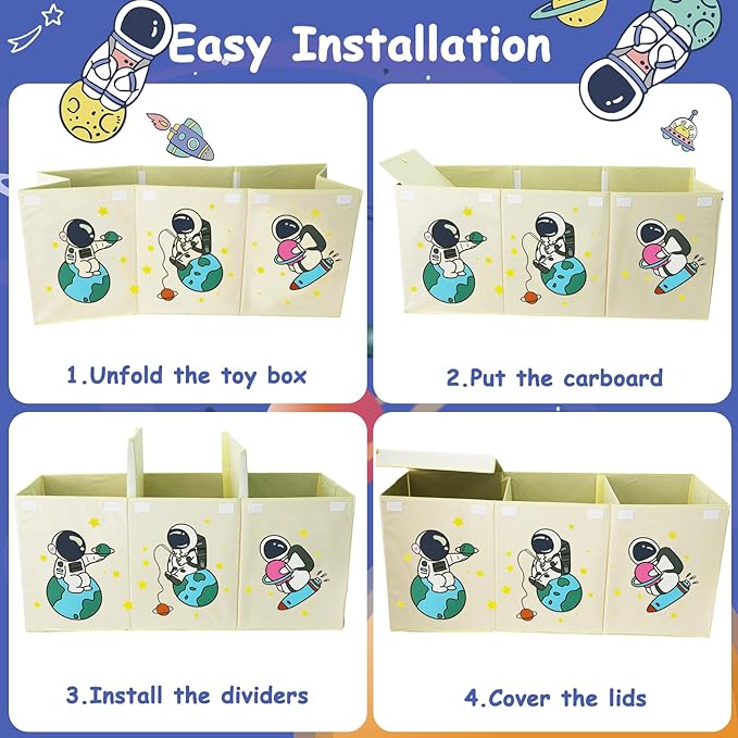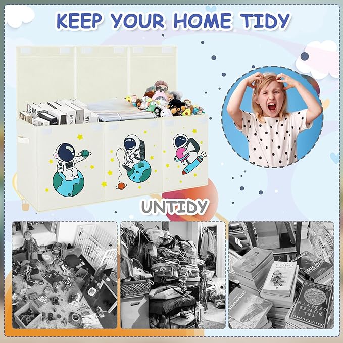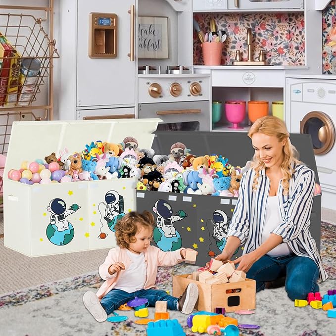 Toy Storage Box with Lid,Extra Large Toy Box Chest Bin Organizer Basket with Dividers for Toddlers,Kids,Boys,Girls,Living Room Area (Beige Astronaut)