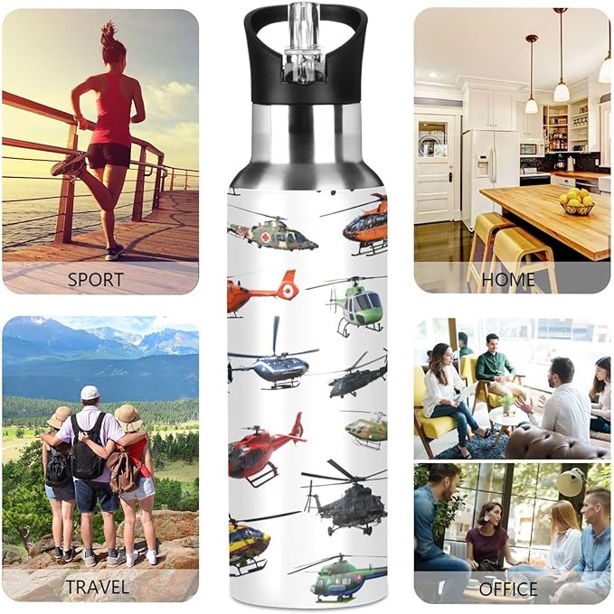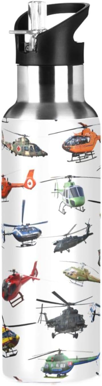 Helicopter Stainless Steel Water Bottle with Straw Lid - 20 Oz Sports Insulated Water Bottle Thermos for Sport Gym Outdoor Travel School