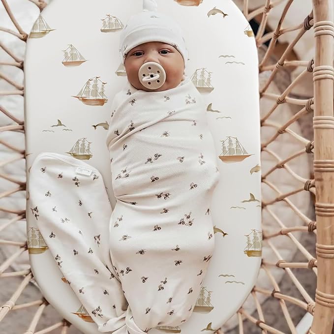 GRSSDER Stretchy Ultra Soft Fitted Bassinet Sheets 3 Pack, Universal Fitted for Oval Rectangle Bassinet Mattresses Safe and Snug, Stylish Bassinet Sheet Gender-Neutral Print for Baby
