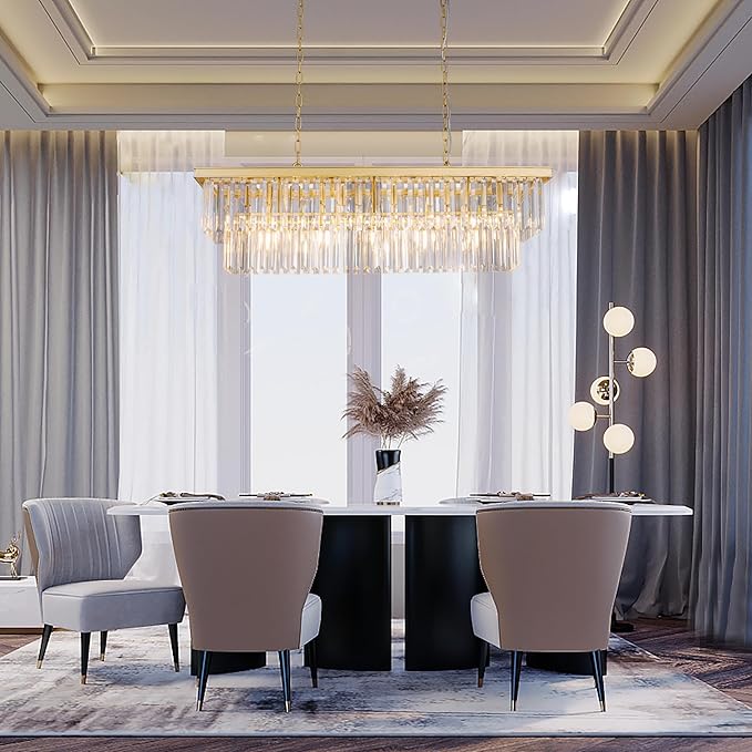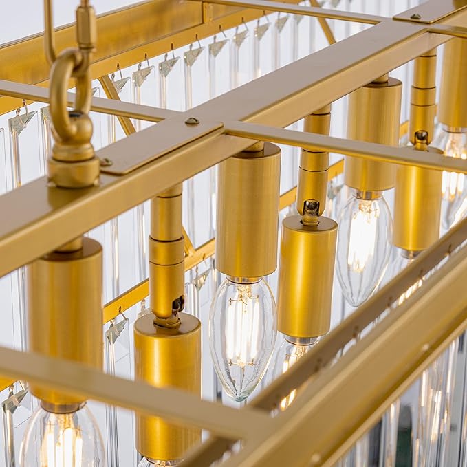 - 11 Lights Rectangle Chandelier: Combines classic and contemporary elements, the clear and simple gold lines are equipped with high-quality k9 crystals to inject dazzling brilliance into your space