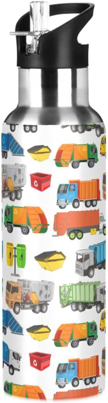 Garbage Trucks Stainless Steel Water Bottle with Straw Lid - 20 Oz Sports Insulated Water Bottle Thermos for Sport Gym Outdoor Travel School (DZ002)