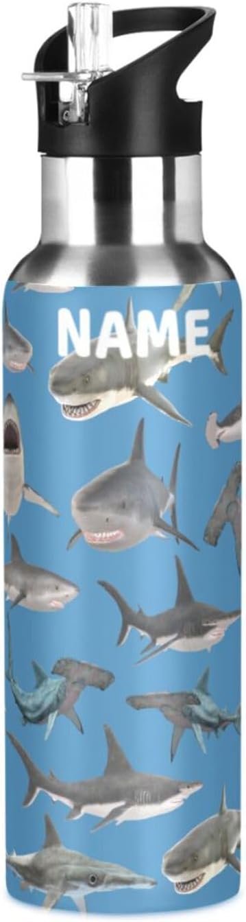 Stainless Steel Water Bottle with Straw Lid - 20 Oz Sports Insulated Water Bottle Thermos for Sport Gym Outdoor Travel School (shark hammerhead shark)