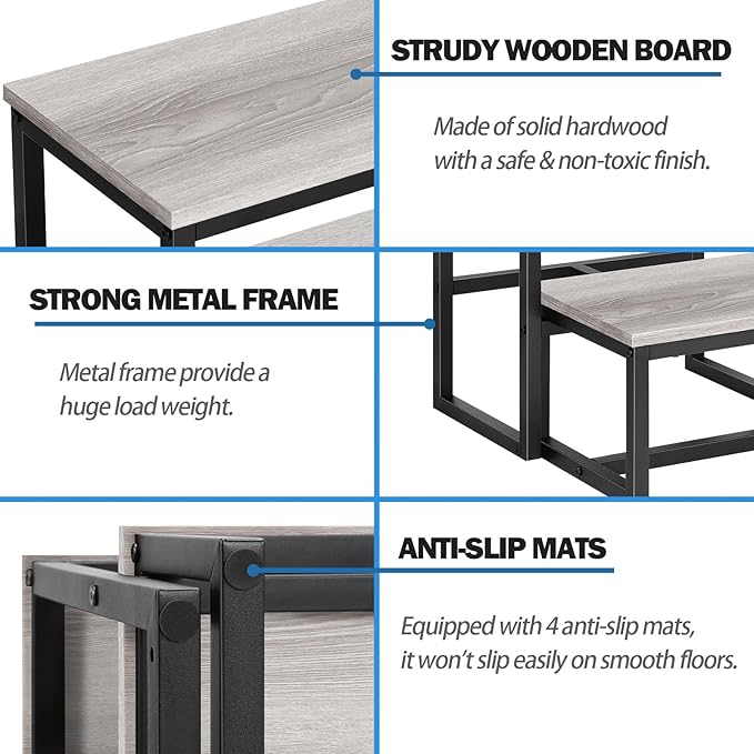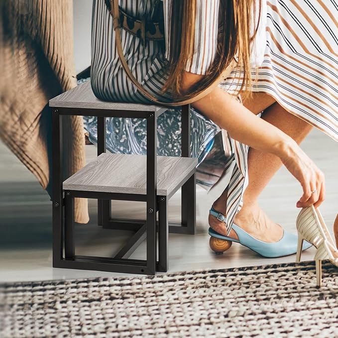 LIANTRAL Step Stools for Adults Kids, 3 in1 Heavy Duty Sturdy Two Step Stool, Supports Up to 500lb, Wooden Board Metal Frame, Foot Stool for High Bed Kitchen Bathroom - Grey