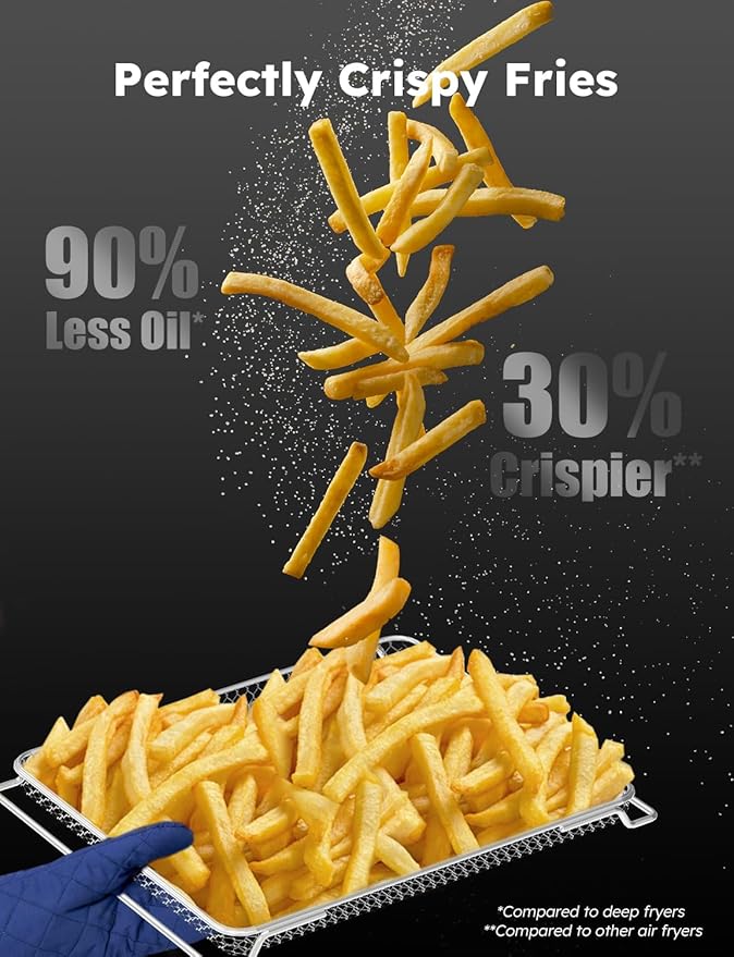 - Special Feature : 2024 Full-Improved; Improved 100% Fan Speed, Crispier Results; 12 Cooking Functions, 100 One-touch Presets; 30QT XL Large Capacity, 4 Adjustable Rack; Upper and Lower Heaters Adustable From 0-100%; 3 Selectable Fan Speed; 50-500℉, 0-100Hours;, 3X Faster Cooking, 90% Less Oil; 10 Toast Settings, 5-Stage Cooking, 3 Sear Modes; Linear T™ Heat Tech; Carrying-over Cooking Function; Auto Preheat; Auto Shut Off; Delay and Warm Function; Mute/Unmute; Panel Lock; Clock Function; Super-Speed and Quiet Fan; 7 Cook Accessories; Easy to Use and Clean 2024 Full-Improved; Improved 100% Fan Speed, Crispier Results; 12 Cooking Functions, 100 One-touch Presets; 30QT XL Large Capacity, 4 Adjustable Rack; Upper and L… See more