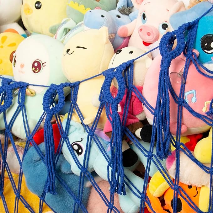 Large Stuffed Animal Storage Net or Hammock for Wall Mounted Macrame Stuffed Animal Display For Boho Nursery Baby Boy Playroom Toy Organizers Pet Net-Blue