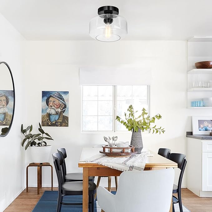- Semi Flush mount Design& Vintage Style--- This ceiling light is perfect for vintage farmhouse and industrial decors. A black chrome base complements the seeded glass and heightens the classic industrial look of this ceiling light, the bubble glass casts a nice shadow on the ceiling, creates a romantic atmosphere to your home.