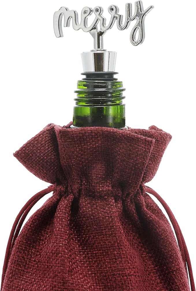 - IN-HOUSE DESIGN: "It's The Most Wonderful Wine Of The Year" white text is screen-printed onto the front of the bag, while the stopper features a cursive "Merry" silver text.