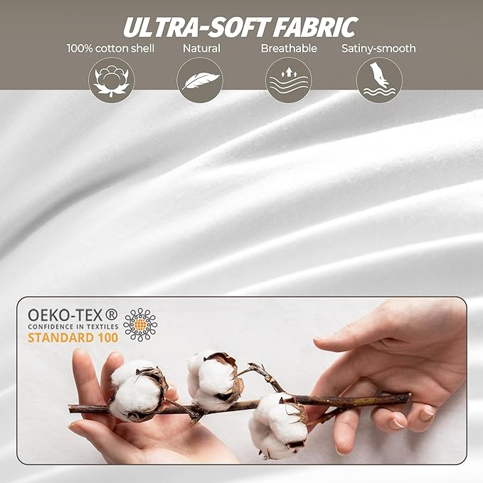 - High-Quality Cover: Crafted from 100% cotton, the pillows feature a breathable, skin-friendly, and durable fabric. They incorporate a high-density anti-fleece lining and reinforced seams to prevent any escape of inner feathers.