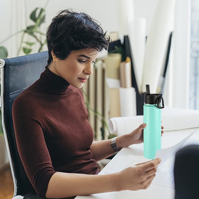 - VACUUM INSULATION DOUBLE WALL: The water bottle is designed with vacuum insulation, which can keep your drink warm for 12 hours and cold for 18 hours, perfect for you to use at home or take with you when you go out for traveling.